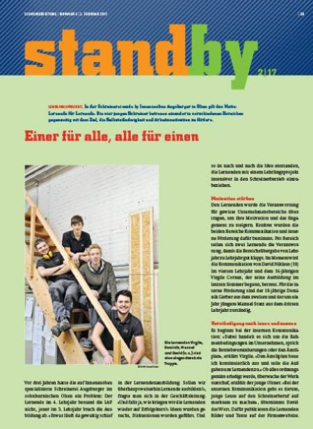 «Lehrziit» (un tempo standby) è una sezione della "SchreinerZeitung", che contiene argomenti speciali per gli allievi e viene pubblicato mensilmente. La "SchreinerZeitung" che contiene «Lehrziit» può essere richiesta gratuitamente dagli apprendisti.